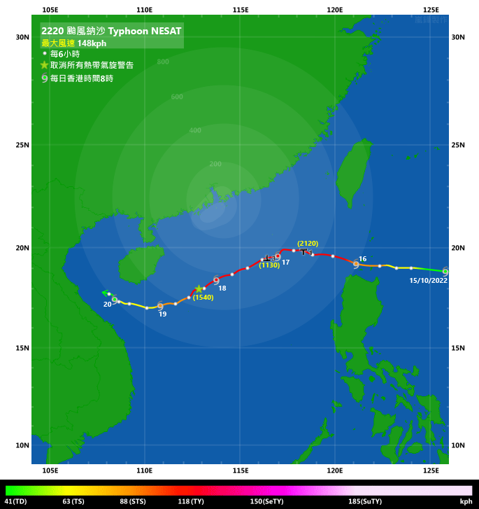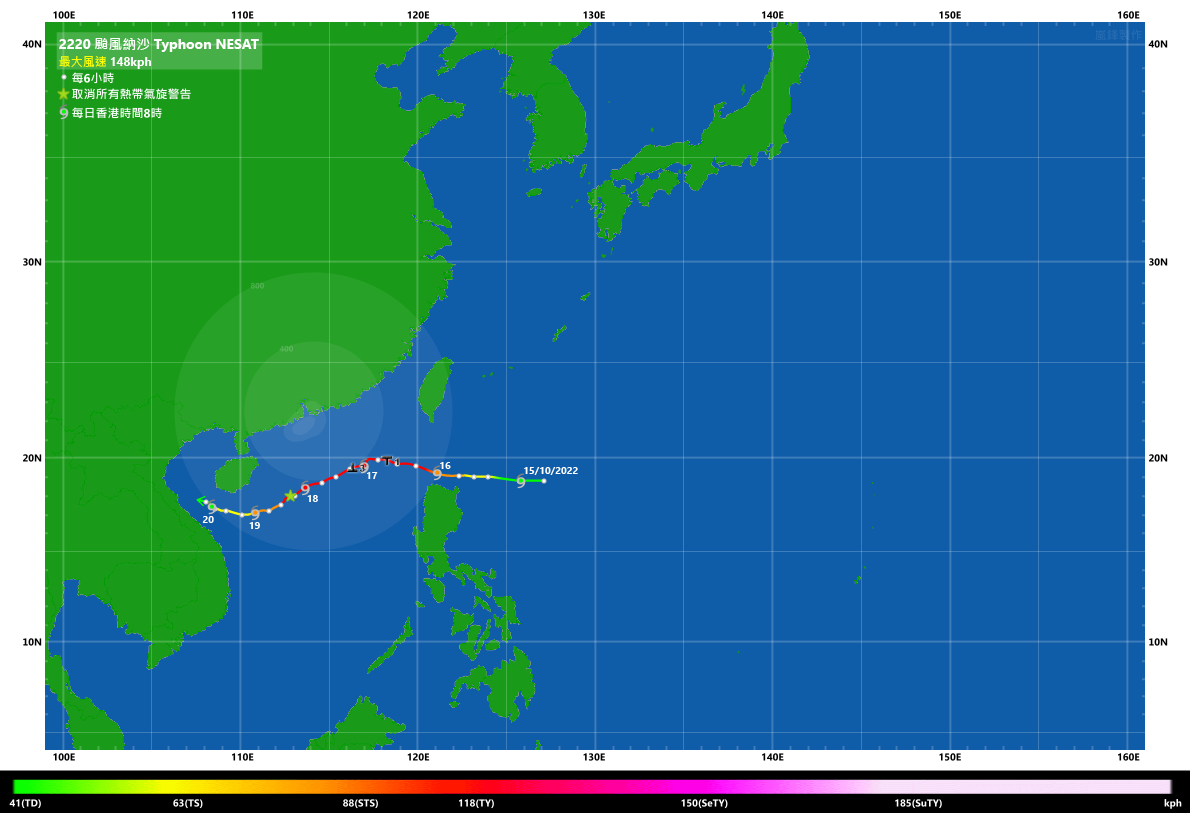 | 所有熱帶氣旋警告信號於2022年10月18日下午3時40分取消 |